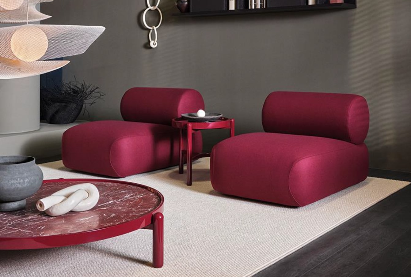 В прошлом году на Salone Del Mobile модным цветом был терракотовый. В этом году мы заметили переход от этого цвета к более богатым и роскошным бордовым тонам. Эти глубокие красные цвета привносят в интерьер неподвластную времени элегантность, добавляя контраст в нейтральные схемы и придавая мощный характер помещениям.