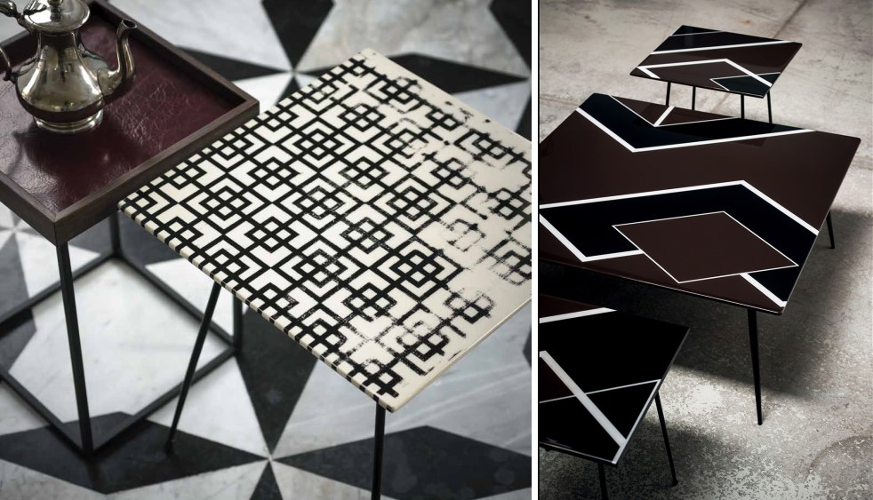 На фото: вариации дизайна столов Baxter Printable.