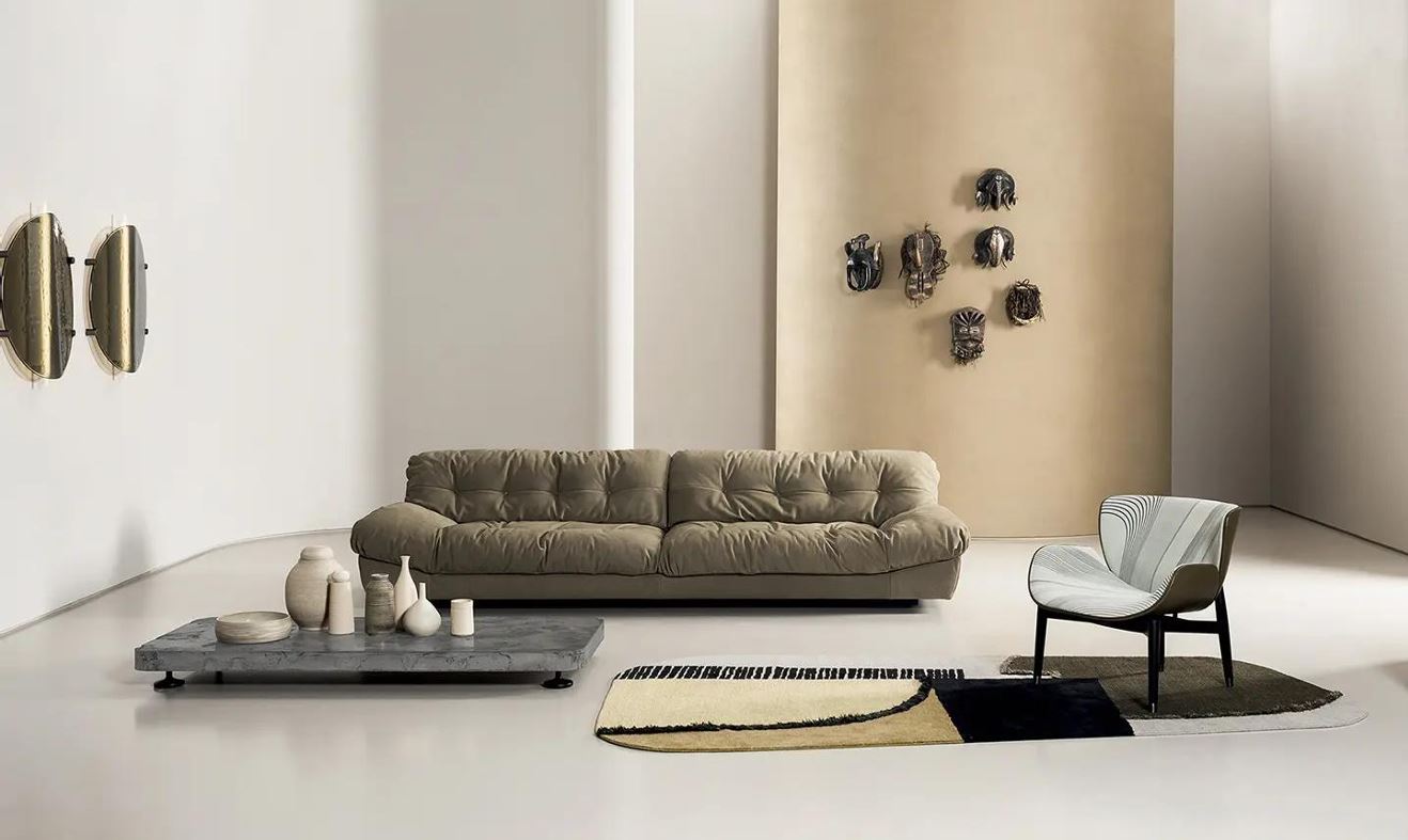 Знаковая модель Camaleonda также возвращает нас в 1970 год. Все культовые элементы сохранены: широкий модуль сиденья, объёмная стёганая обивка из полиуретана и уникальная система креплений — тросы, крючки и кольца, изобретённые самим Марио Беллини. Благодаря модульной структуре диван можно перестраивать бесконечное количество раз, создавая индивидуальное пространство, словно конструктор из гигантских пикселей.