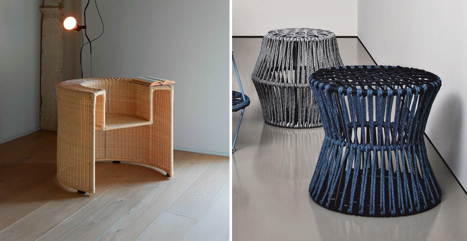 На фото: плетёное кресло из ротанга Horm Charlotte, столики Saba Ziggy.