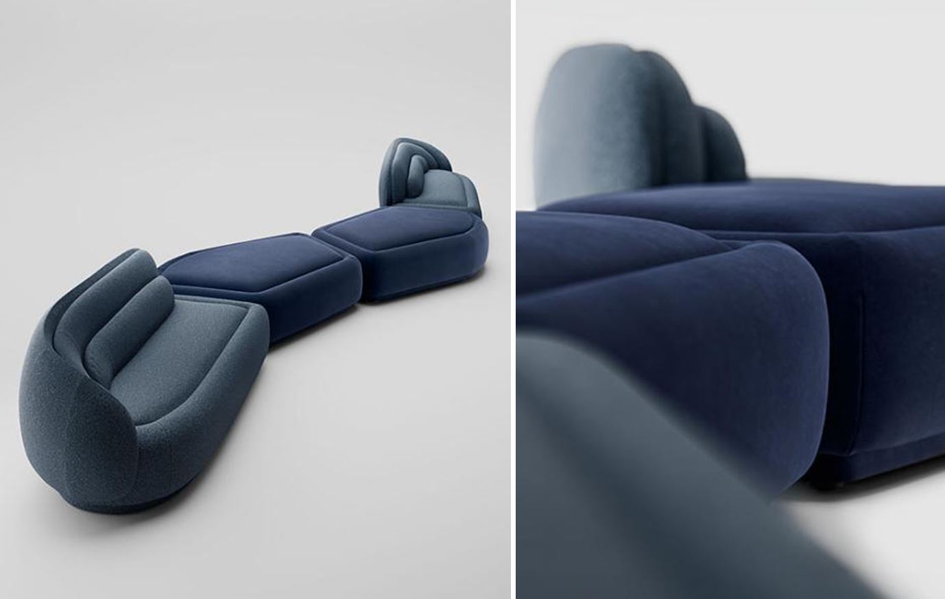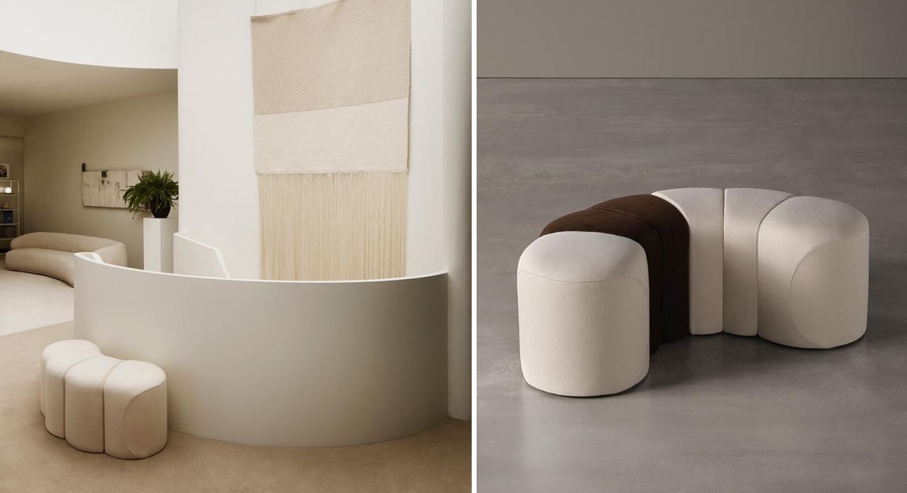 На фото: мягкий диван Pianca Peonia состоит из нескольких уровней, которые постепенно увеличиваются в размерах, напоминая лепестки цветка. Геометрия модулей позволяет создавать бесконечные комбинации.