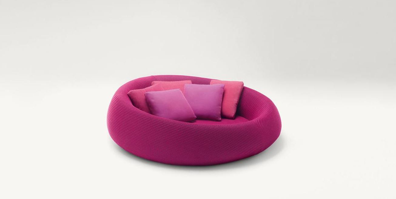 На фото: круглый диван Paola Lenti Ease. Подходит для размещения на открытом воздухе.