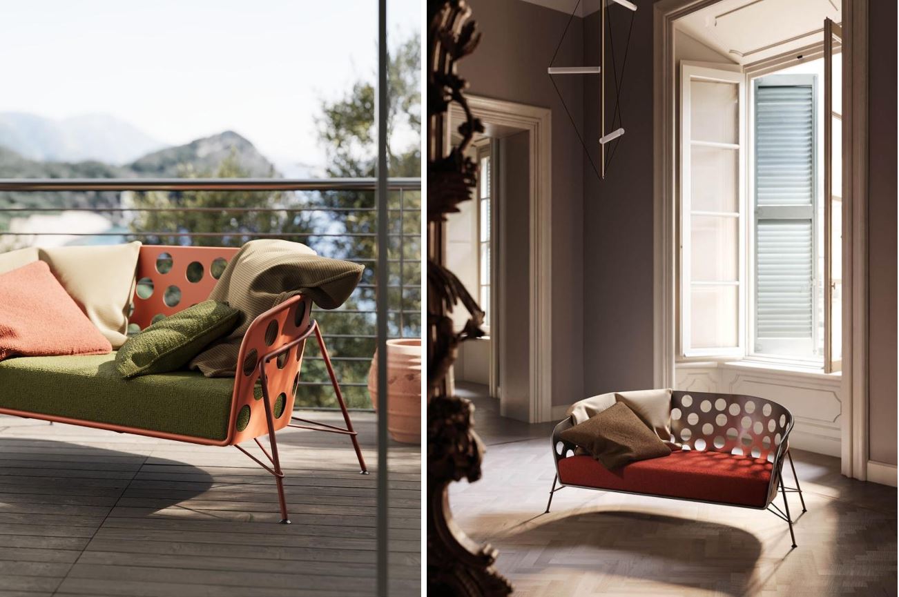 На фото: диван Midj Bolle с перфорированной металлической спинкой.
