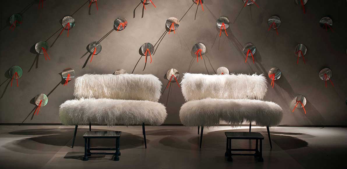 Умение комбинировать рукотворное плетение с производственным пластиком, ротанг с медью, а оленью кожу с алюминием и сталью сформировалось в уникальный творческий прием.