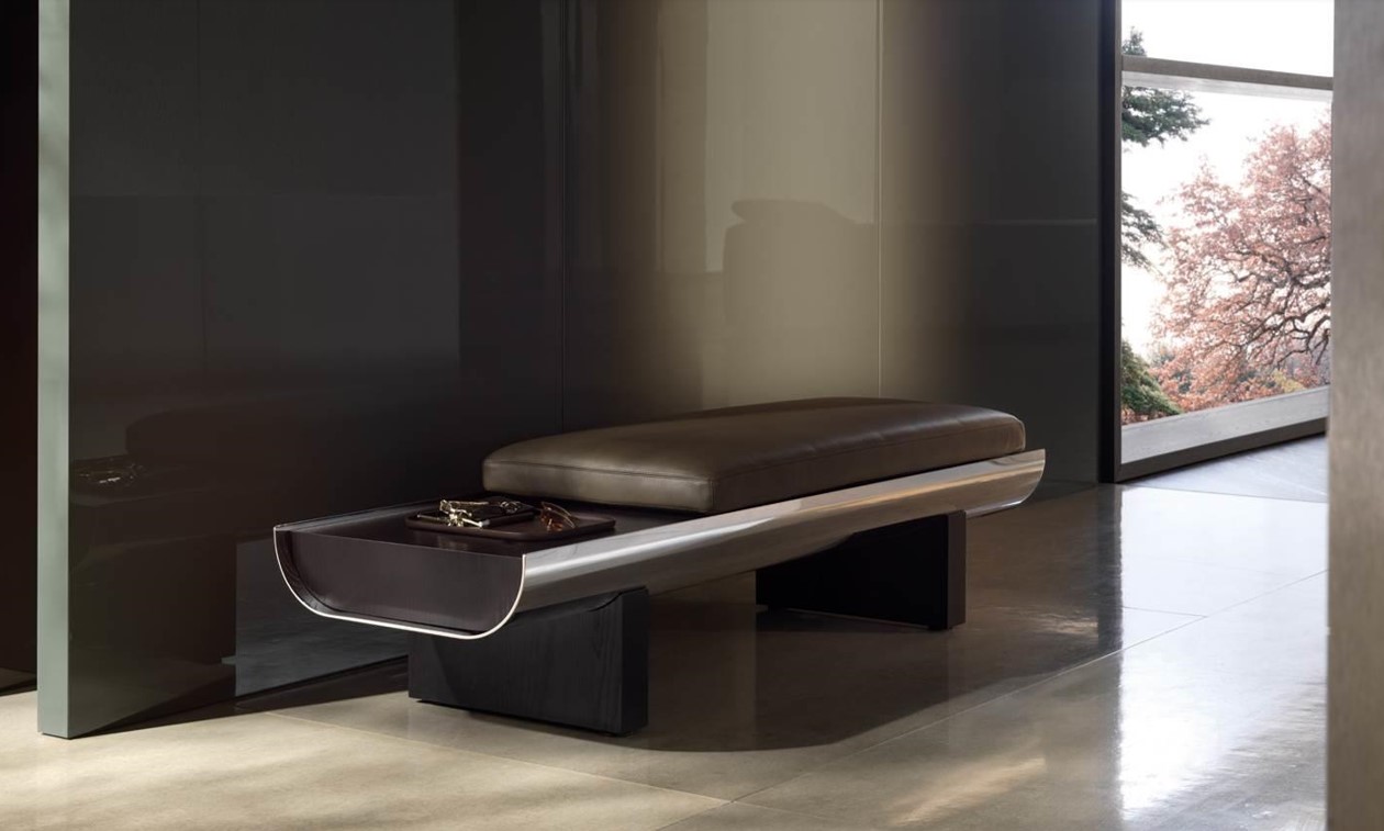 На фото: скамья Minotti Pilotis Bench создана по мотивам скульптурного дизайна консольного столика Pilot из стали и дерева.