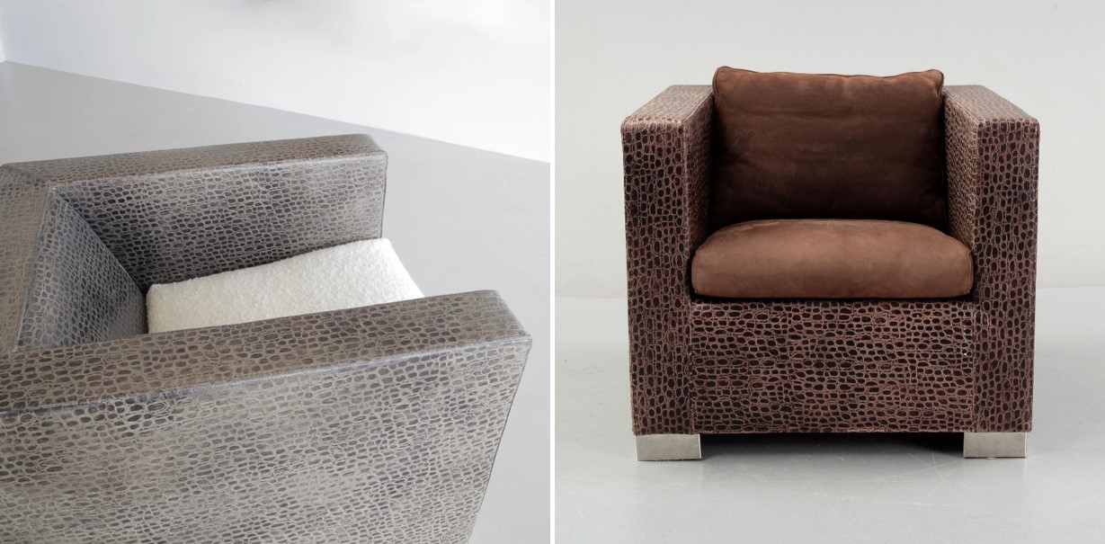 1997 год. Первая встреча. Дордони приносит идею. Три дивана и кресло Suitcase — кубическое, строгое, похожее на чемодан из мира высокой моды.