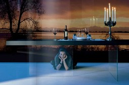 - Стильный стол с основанием из стекла и столешницей из дуба