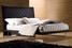 Двуспальная кровать с высоким мягким изголовьем, декорированным пуговицами.