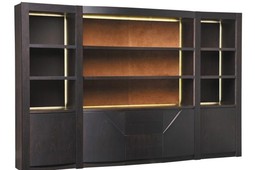 Деревянный книжный шкаф с двумя ящиками, обитыми кожей.