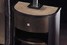 Прикроватная тумбочка со столешницей закругленной формы, отделанной кожей.