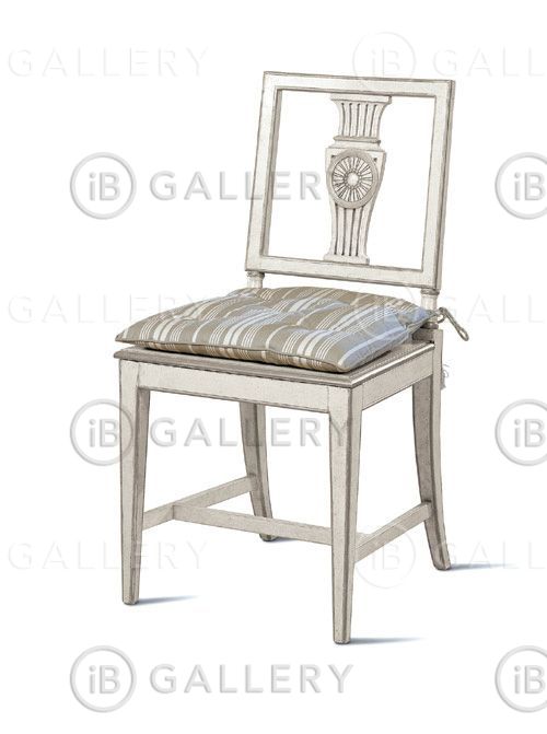 • Обеденный стул на изогнутых ножках в греческом стиле, украшенный миниатюрными металлическими пуговицами.