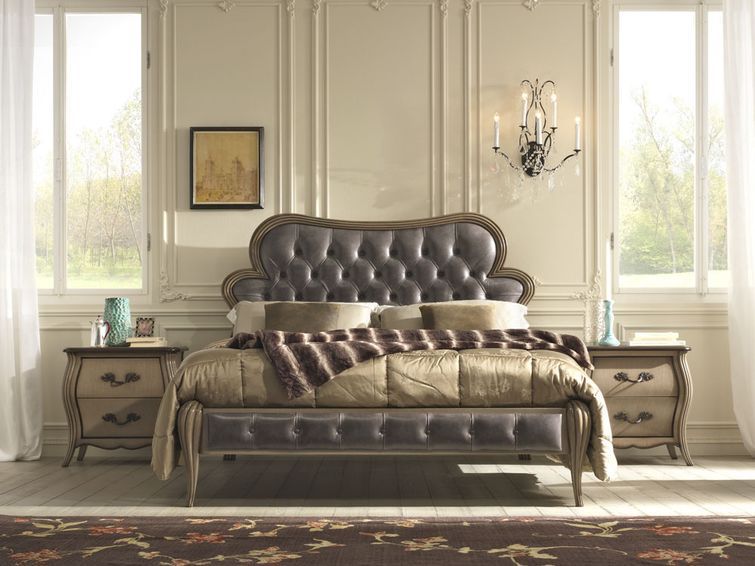 - Двуспальная кровать с высоким изголовьем в старинном стиле