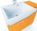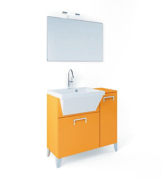 Тумба выполнена из МДФ с матовой поверхностью в желтом цвете, раковина из керамики.