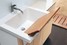 Тумба и полка выполнены из светлого дуба, раковина выполнена из керамики.