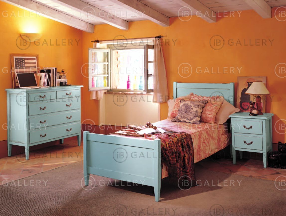Односпальная или двуспальная кровать выполнена из орехового дерева. Варианты отделки каркаса: под дерево, лакированный, лакированный под дерево.