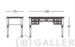 Письменный стол выполнен из орехового дерева. Включает в себя пять выдвижных ящиков с металлическими ручками.