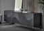 Общий стиль получился довольно строгим, но элегантным. Доступен в трех однотонных цветовых комбинациях: внешняя структура из лакированного дерева цвет белый, или piombo, или bronzo, дверцы из лакированного структурного полиуретана оттенки белый, или piombo или bronzo, металлическое основание в тон основной композиции белый, piombo, bronzo.