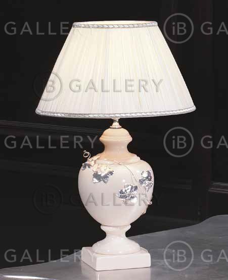 Основание лампы выпуклое, изготовлено из керамики и украшено в ручную позолоченными или посеребренными цветами.