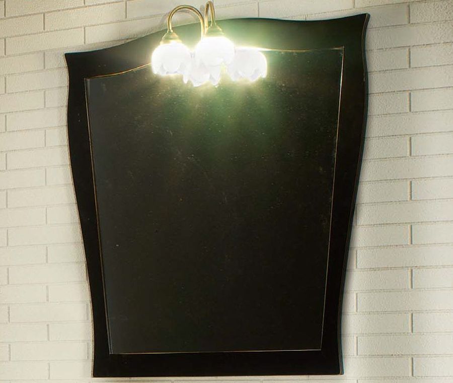 Настенное зеркало трапециевидной формы, к низу сужается.