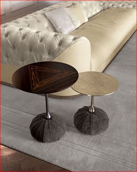 Модель производится в нескольких вариантах отделки: капитоне с одноцветными пуговицами или с кристаллами "Swarovski", со складками по окружности.