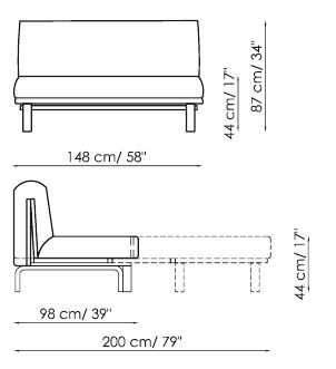 Каркас модели изготовлен из металла (сталь). Съёмная обивка выполнена из текстиля, и по каталогу производителя доступен выбор цветов.