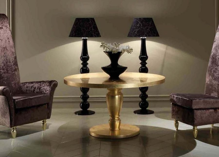 Круглый кофейный столик, выполненный в оригинальном дизайне, вдохновлённом чертами классического и современного стилей.