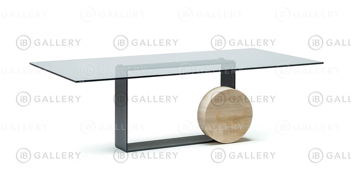 * Цена указана за стол 200x100x75h top glass clear - cylinder marble BC polished white Carrara - base metal GFM69 graphite embossed