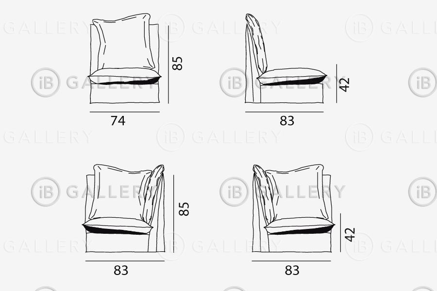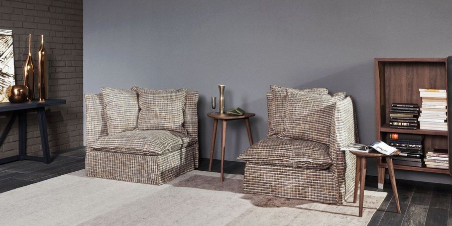 Это модульное кресло без ручек является многослойным и имеет деревянный каркас.