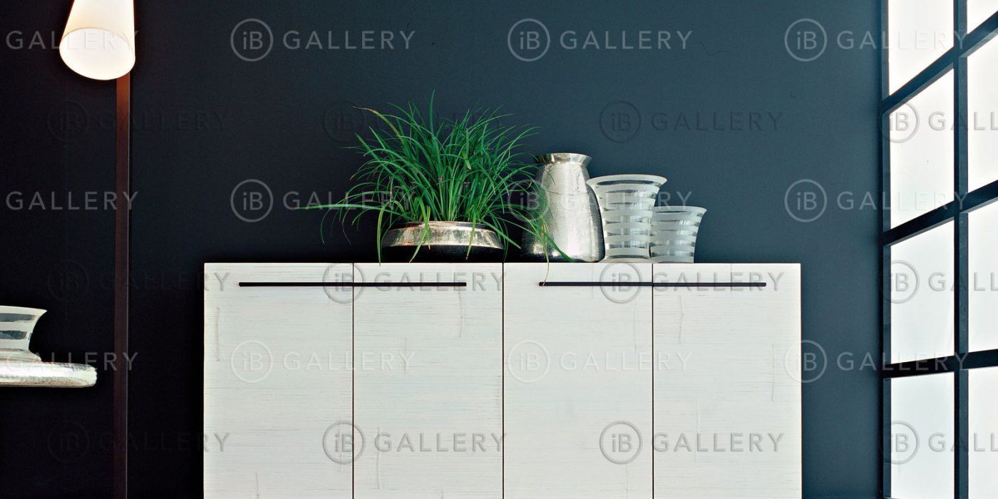 Этот буфет имеет четыре двери с бамбуковой ламинацией и одну полку цвета чёрного дерева.