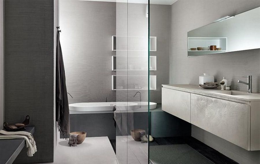 Тонкие пропорции, благородные цвета и гармонично сочетающиеся объёмы - всё это является отличительными элементами, вдохновившими композицию ванной комнаты Twenty. Все использованные материалы тщательно подобраны: белые лакированные ниши, ванна из текнорила, базовые блоки и поддон из серого смоляного цемента.