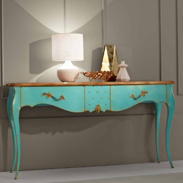 Эта консоль выполнена в ярком бирюзовом цвете.