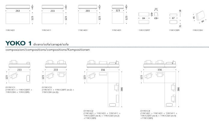 * Цена указана за диван Yoko 01YK1C5 в размере 233*103*43 см в обивке Cat.3