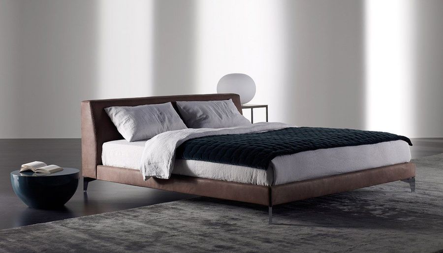 Эта кровать имеет каркас из дерева высшего качества. Модель может быть обита кожей или тканью.