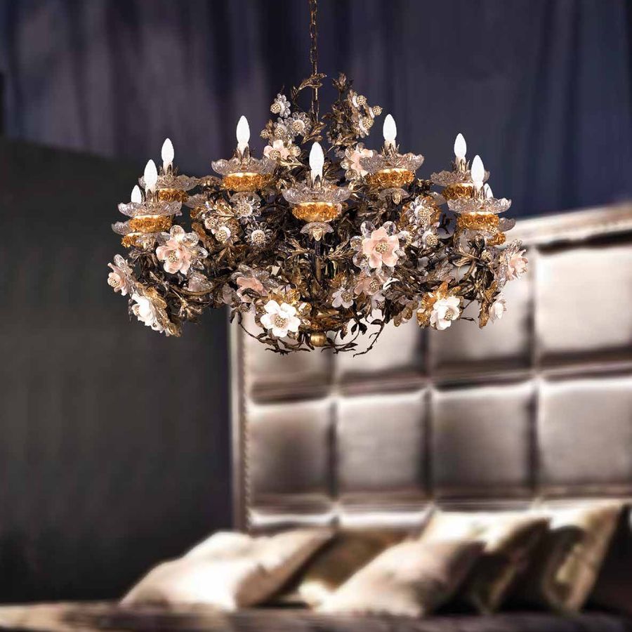 Модель имеет 14 лампочек, хрустальные и керамические детали.