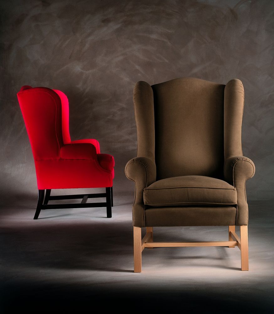 Большое комфортное кресло с высокой спинкой. Каркас выполнен из дерева, предлагается несколько вариантов покрытия.