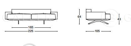 Каркас дивана выполнен из алюминия, металла и натурального дерева.