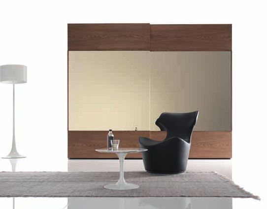 Платяной шкаф с двумя раздвижными дверцами и большим зеркалом, расположенными посередине.