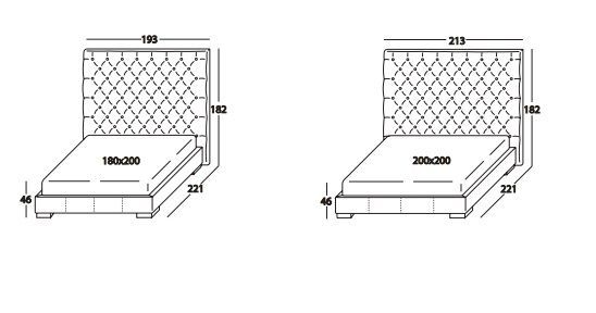 Деревянная рама обита полиуретаном, обивка покрыта защитной тканью. Изящное высокое изголовье кровати представлено в стёганом дизайне.
