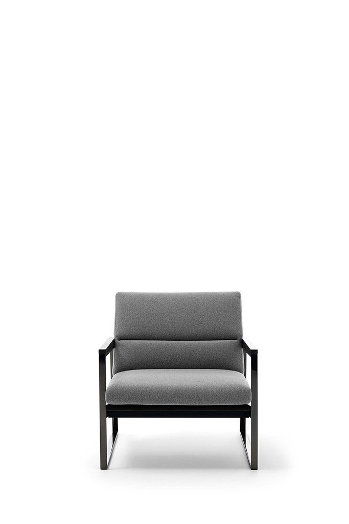 Модель на металлическом каркасе, подлокотники выполнены из дерева. Сиденье и спинка в кожаной обивке, так же возможен вариант с текстильной обивкой (Mix armchair).