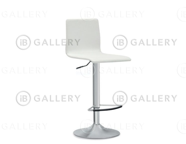 Современный стул с текстильным сиденьем. Основание и ножка выполнены из металла, предусмотрена подставка для ног.