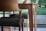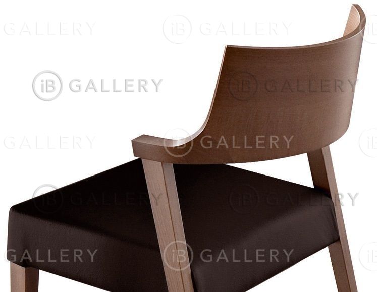 Модель представлена в единственно цветовом решении. Каркас выполнен из бука, а мягкое сиденье с текстильной обивкой коричневого цвета. Задние ножки располагаются под острым углом к сиденью и переходят непосредственно в фигурную спинку.