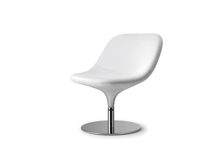 Центральная часть кресла и круглое основание может быть выполнено из полированной или матовой хромированной стали. Также доступен вариант с конусообразной базой из полированного алюминия.