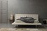 Кровать современного стиля с высоким изножьем. Основной материал, которым обита кровать, декорирован стежкой.
