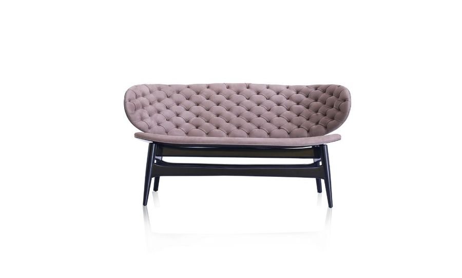 Диван исполнен из деревянного каркаса. Выполнен в кожаной обивке и украшен декоративной стежкой капитоне.