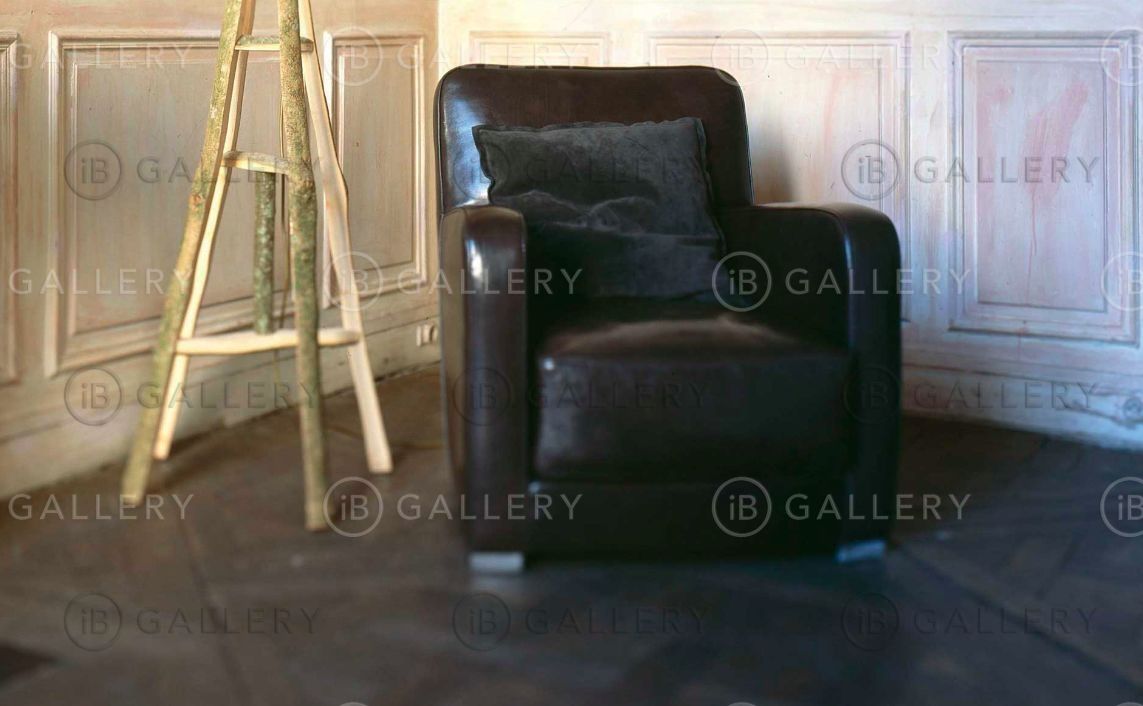 Мягкое кресло с прямоугольной спинкой на одном уровне с подлокотниками, выполненное в классическом стиле.