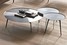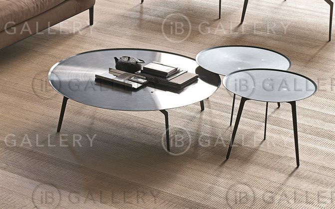 Верхняя часть и основание данного стола могут быть выполнены из окрашенной или нержавеющей стали. Модель имеет латунные вставки.