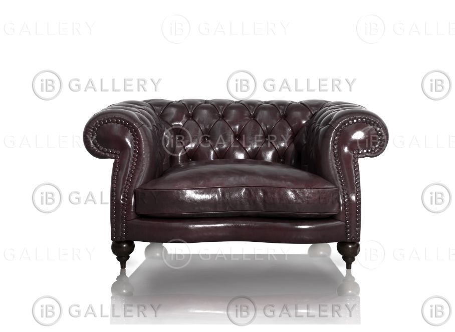 Кожаное кресло, выполненное в классическом стиле на деревянном каркасе.