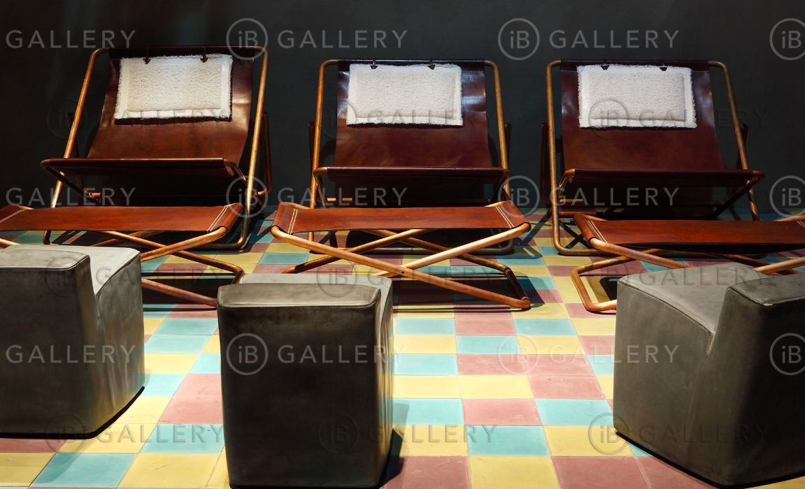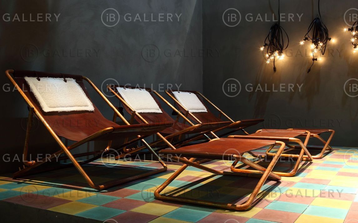 Кресло-шезлонг выполнено в скандинавском стиле с подвесными помпонами сзади.