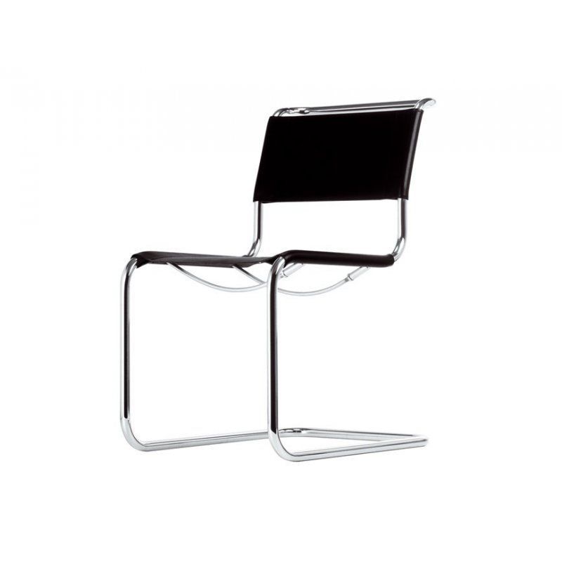 Обивка данного стула может быть выполнена как из кожи, так и из текстиля. Каркас модели изготовлен из хромированной или окрашенной трубчатой стали.