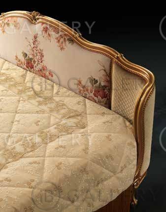 Кровать с высоким изголовьем и изножьем на деревянном каркасе. Декоративные элементы выполнены вручную. Основание кровати украшает декоративная бахрома.